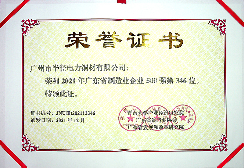 半徑連續12年榮登“廣東省制造業500強”榜單
